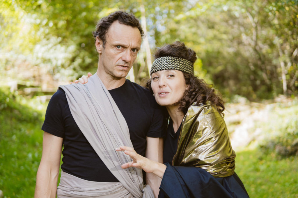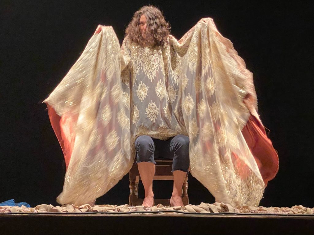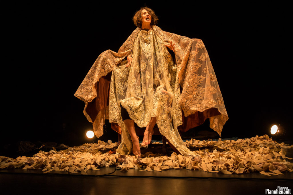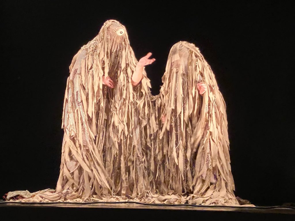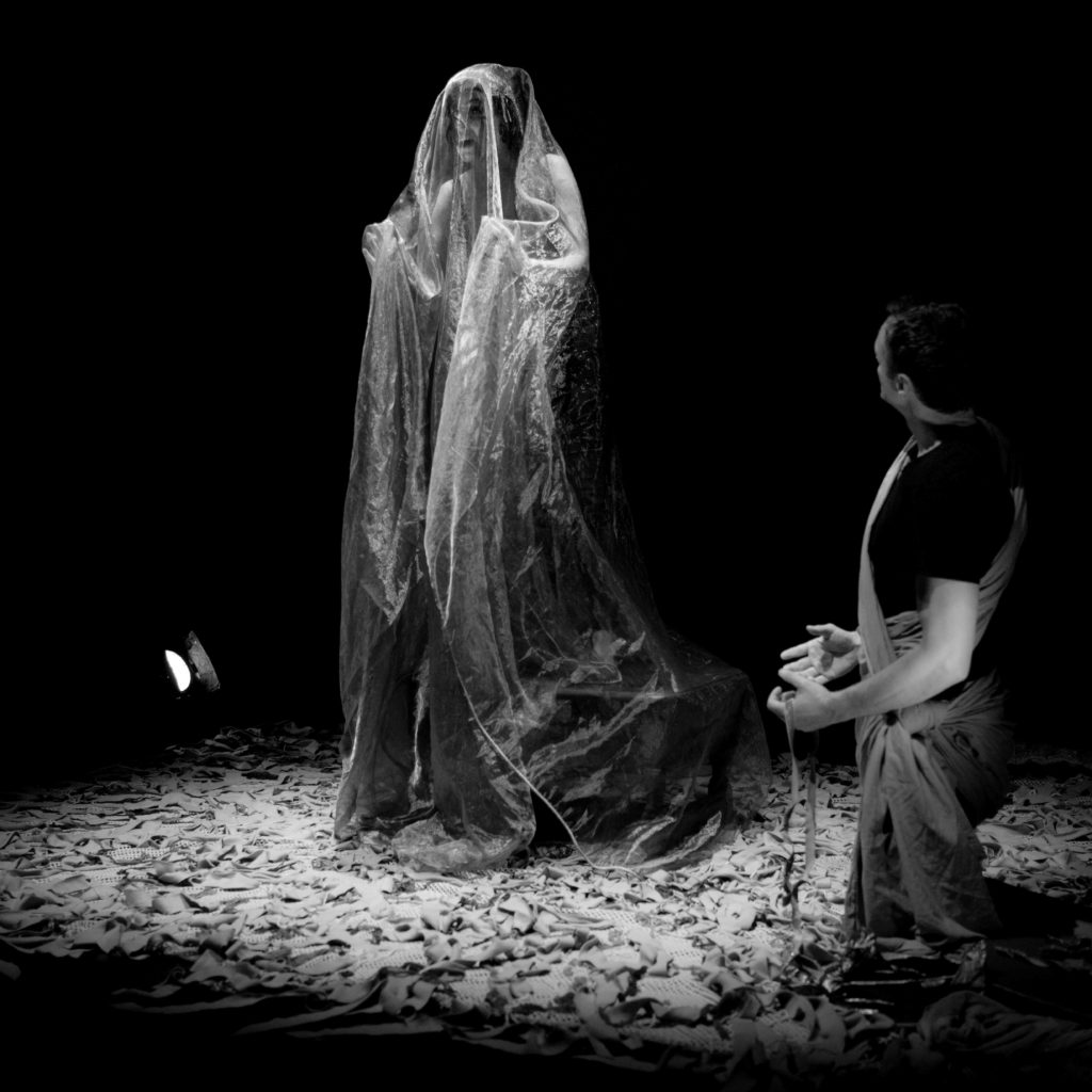 Sur un simple tapis de tissus, deux comédiens jouent tous les personnages, dans un jeu vif, direct, au plus près du public.