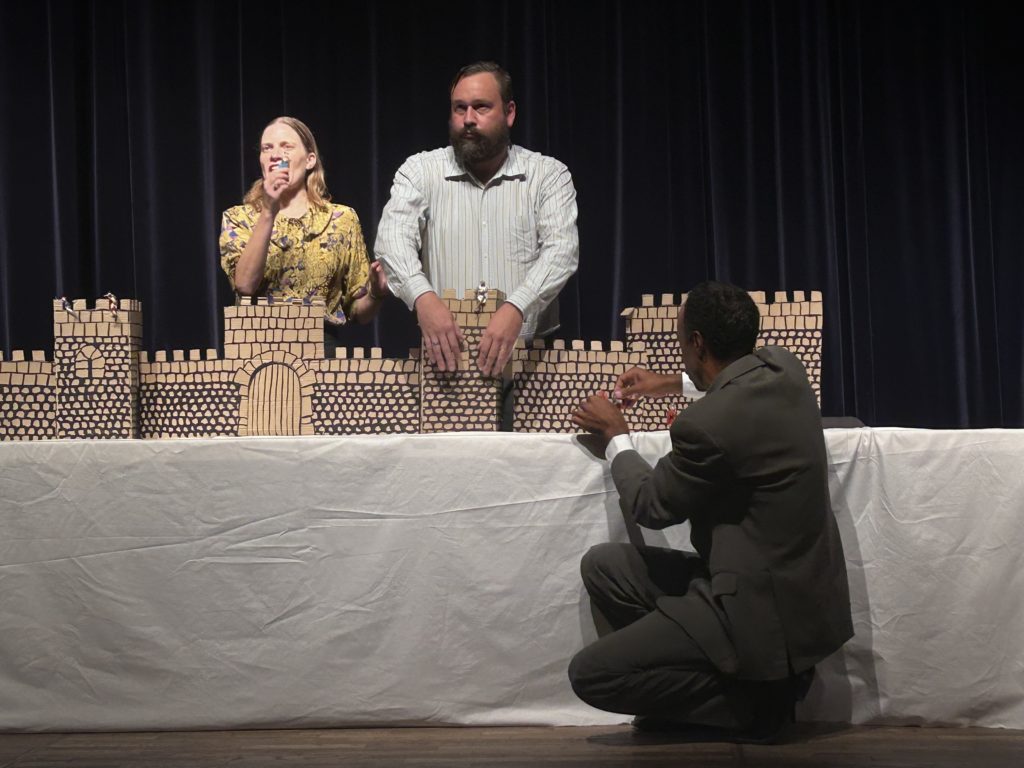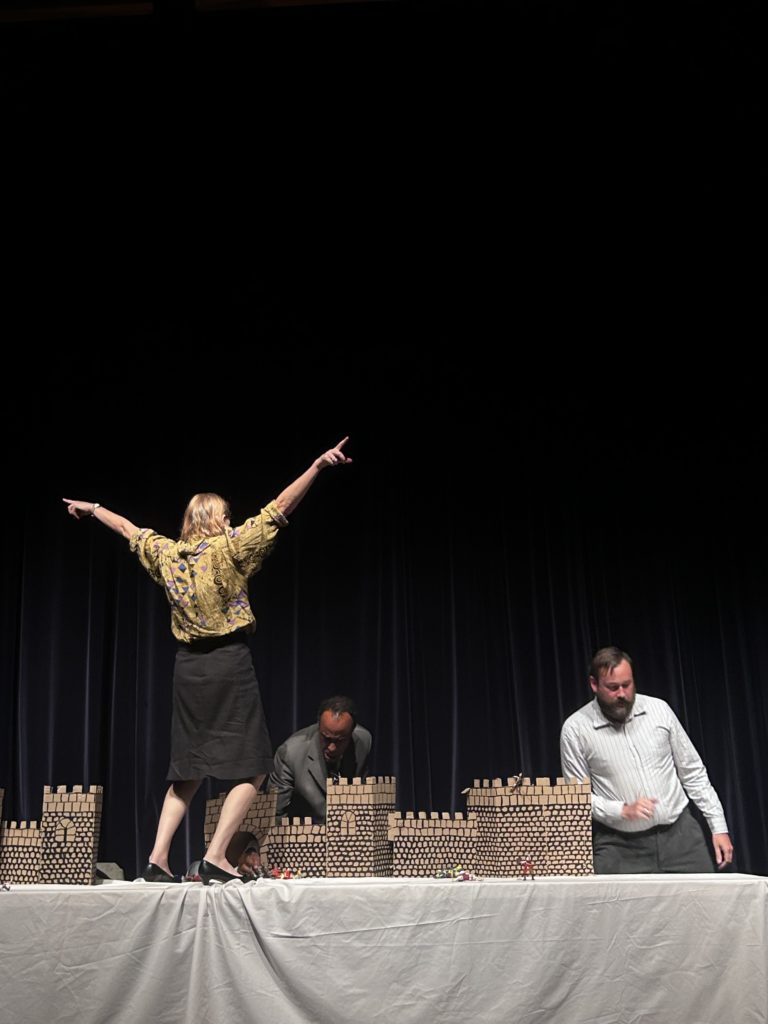 Absolument. Sa position de pouvoir posait déjà problème. J’ai monté le spectacle au moment de la candidature de Ségolène Royal et bien avant le mouvement metoo, et je pense que l’accès des femmes à des postes de décision – en politique comme ailleurs – pose encore problème. D’ailleurs le rapport de domination se rejoue sur scène entre les deux conférenciers masculins et l’historienne, qui ont bien du mal à la trouver légitime.