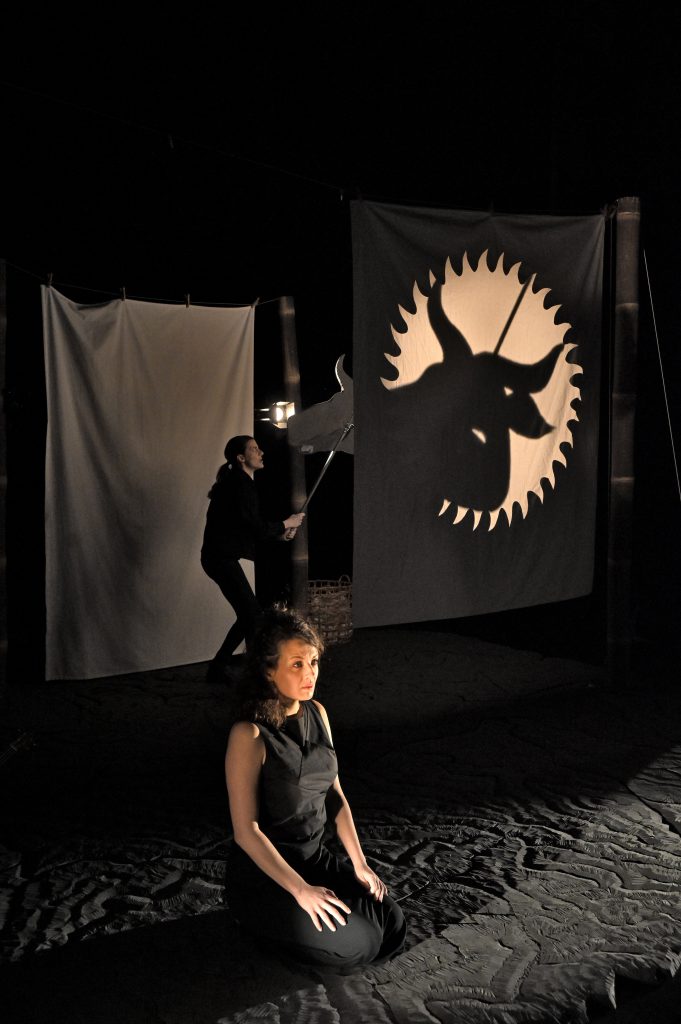 . un théâtre d’ombres pour évoquer les épisodes célèbres du périple d’Ulysse (le Cyclope, les sirênes, les Lotophages, Circée la magicienne, les prétendants, Charybde et Scylla…)